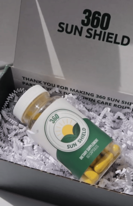 360 Sun Shield is a dietary supplement formulated with all natural, plant-based active ingredients and that’s designed to nourish, repair, and protect the skin from harmful UV rays. It’s made using a blend of essential vitamins and minerals, including Polypodium Leucotomos, Beta Carotene, Vitamin C, Vitamin E, Niacin (Vitamin B3), and Astaxanthin, and is certified to be 100% vegan and gluten-free. Just two pills a day can protect your skin from irreversible skin damage and premature aging caused by UV rays.