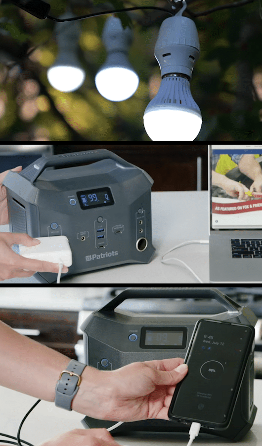That said, know that the Patriot Power Sidekick’s internal battery is powerful enough to keep all of your devices running for hours on end, all on a single charge. Its battery allows you to keep a set of LED light bulbs running for at least 100 hours, and also allows you to recharge a smartphone for 60 hours, a tablet for 17 hours, and a laptop for 5 hours.