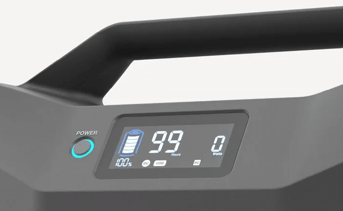 Starting at the top side of the power station, we have its dedicated Power On/Off button, followed by a built-in LED display screen that provides you with all the necessary information for the power station’s operation.