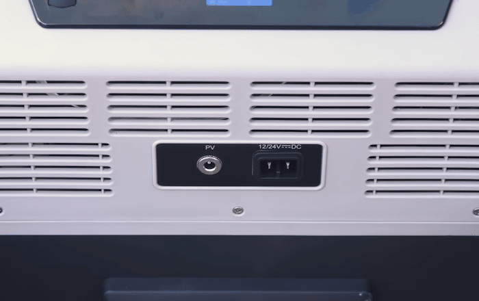 Integrated directly below the cooler’s control panel, we also have its Power Input ports, which consists of a PV (photovoltaic) input port (for powering the cooler directly via the included solar panel) and a 12/24V DC power input port (for powering the cooler directly from a power outlet).