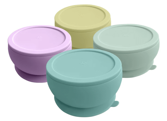 Each bowl also comes together with an included silicone lid for sealing its contents if necessary, such as when you’re looking to store the rest of your baby’s meal in the fridge for later if they don’t feel like eating it right away.