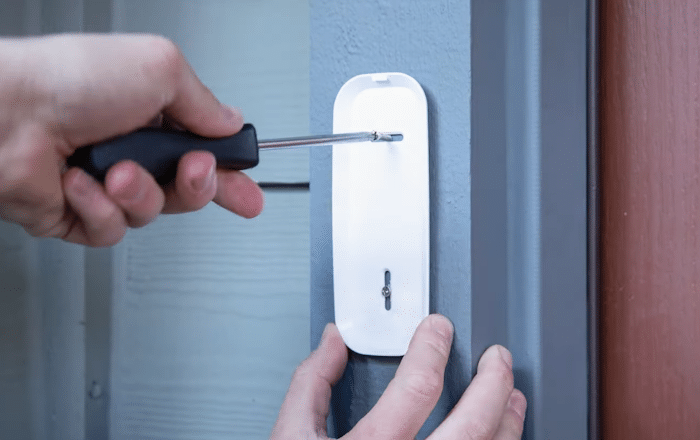 Its installation process is fairly easy to perform, and should only take you around 10 to 20 minutes at most. You simply have to drill 2 holes on the walls at either side of your front door, and then install its dedicated 30º wedge wall mounting bracket (included in the package), for which you’ll only need an electric drill and a standard screwdriver.