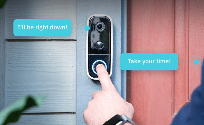 The device also comes equipped with a tactile push-button chime integrated close to its bottom-side that can be used for ringing the doorbell (like any other typical doorbell) while simultaneously activating the unit’s 2-Way Audio System.