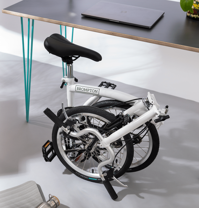 The Brompton A Line is a robust folding bike designed specifically for city riding with a one-size-fits-all spec that integrates an original 3-part fold, a stylish handmade Gloss White steel frame equipped with Genuine Brompton bike parts that are designed to be very durable, a natural sit-up saddle that makes it very comfortable to ride along with a riser handlebar, and three easy-to-use hub gears that come accurately tuned for riding it through the city, as well as fittings compatibility that allow you to add your own bicycle parts as you get accustomed to riding this bike.