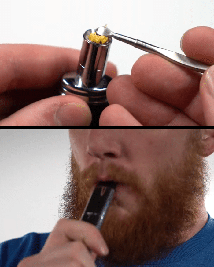 This atomizer attachment is meant to be screwed into the top-end of the device, and then have the device’s mouthpiece attached directly over it (after loading its Quartz Crystal Atomizer with some concentrate of your choice).