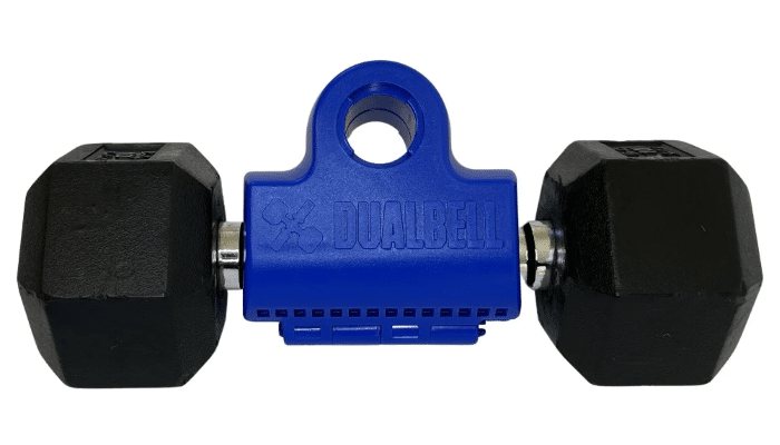 On top of that, the Dualbell also features a simple-to-use design that essentially allows it to be perfectly clamped around the handle of a dumbbell.