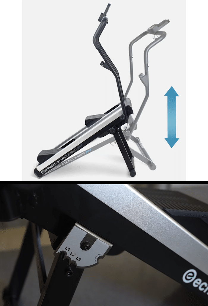 Not only that, but the Echelon Stair Climber Sport also comes equipped with an adjustable kickstand integrated at the front-side of its base that can allows users to set up the machine at three (x3) different incline levels, meaning you can adjust its frame at 3 different angles, depending on how steep you’d like have it set up. Thanks to that, users can easily customize their workout experience for either an easier or a tougher step climbing workout.