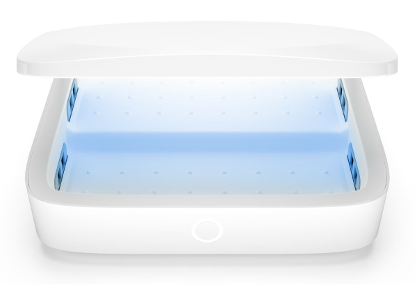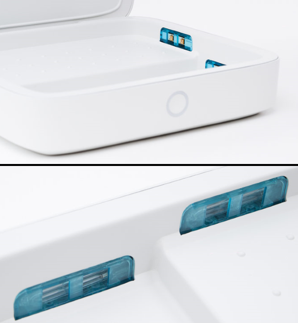That said, while this UV-C Light Sanitizing Unit is laboratory-certified to effectively eliminate up to 99.999% of viruses and bacteria (like E. coli and the coronavirus) within just a few minutes of using it, you can also conveniently use it as your own personal Qi-certified Wireless Charging Dock by simply placing one (or multiple) Qi-enabled device(s) on top of the unit’s lid.