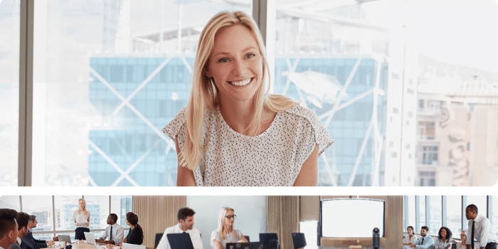 When used in its Collaboration Mode, the device’s video-recording supports up to three (x3) active speakers at once, for which all those 3 people can be zoomed in on automatically and appear on the screen at the same time, while a panoramic view of the conference room is also displayed at the bottom-side of the screen.