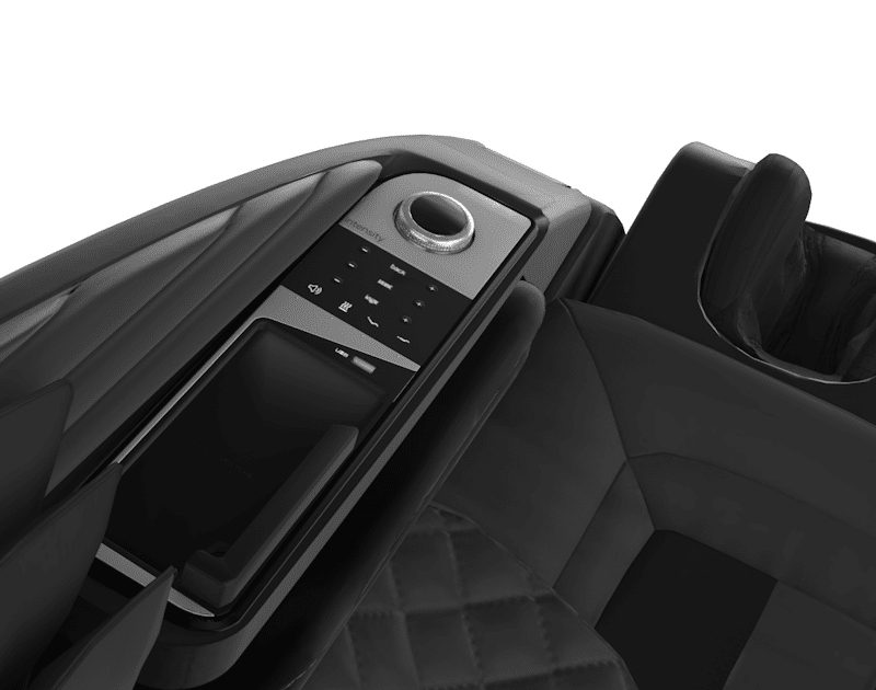 Then, on the right-hand side, there’s also a built-in digital remote control equipped with a touchscreen display which offers users a wide range of memory settings for the chair’s operation. Alternatively, users can also use their smartphone to control the chair’s different functionalities via the Human Touch App.