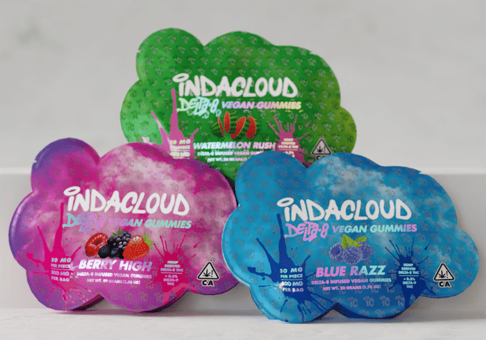 IndaCloud’s Delta 8 THC Gummies come in three delicious flavor profiles: Blue Razz (sativa), Berry High (indica), and Watermelon Rush (indica).