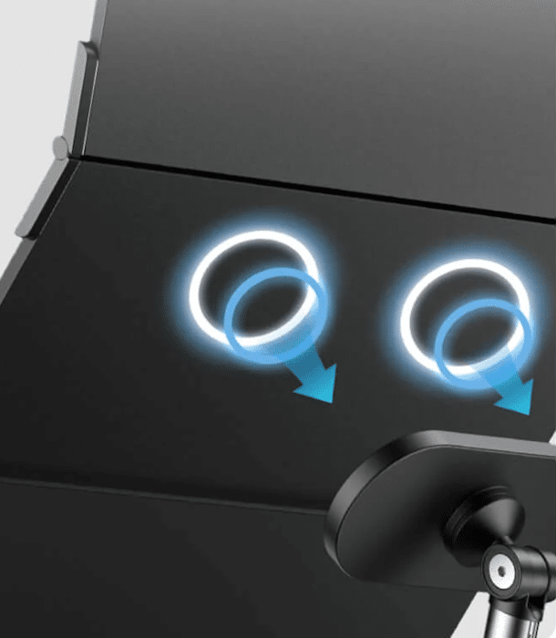 For its operation, this portable folding dual-screen display comes integrated with a user-friendly control panel that’s located at the right side of the device.