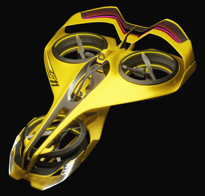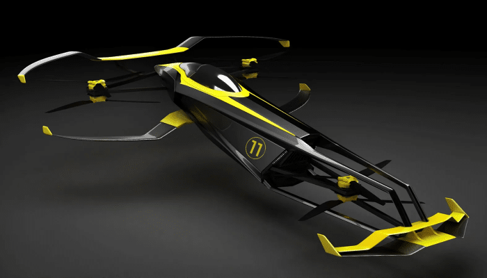This concept project for a flying racecar was born at Airbus Helicotper in 2018, for which the vehicle’s hydrogen-based eco-friendly design came from the minds of two aviation experts: ex-fighter pilot Thierry de Boisvilliers (now COO of MACA and President of PATROLAIR), and former Airbus Helicopters executive Michael Krollak. The duo decided to create the first-of-its-kind hydrogen-powered flying racecar in an effort to reduce the harmful carbon emissions produced by traditional combustion engines on the Formula 1 track.