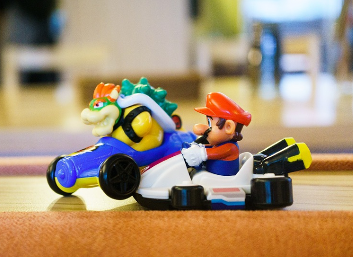 The idea of Mario Kart live is an odd one, but as Nintendo has repeatedly shown, they’re not afraid of swinging for the fences with unusual tech. Shipped with the game box are a digital download key, one remote-controlled Mario or Luigi car, and four cardboard gates. Players then take it upon themselves to layout a physical course in their home, using the included cardboard gates as checkpoints.