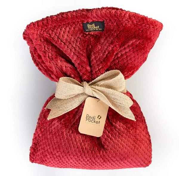 What’s more is that this super-cozy fleece throw blanket also features a large 20″ foot pocket that’s spacious enough for you to comfortably keep your feet and toes nice and toasty.