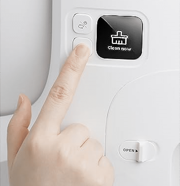 Below these button controls, there’s also a small latch that’s used to open the litter box’s waste container.