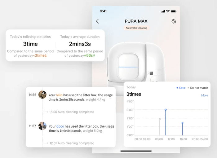 In addition, the PETKIT App also provides cat owners with a detailed log containing different tracked health parameters related to their cat’s health, such as your cat’s weight, the frequency which their uses the litter box, and the duration of each usage, all of which will give you an insight with reliable information of your cat’s health.