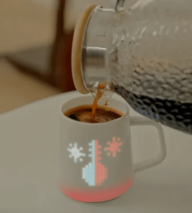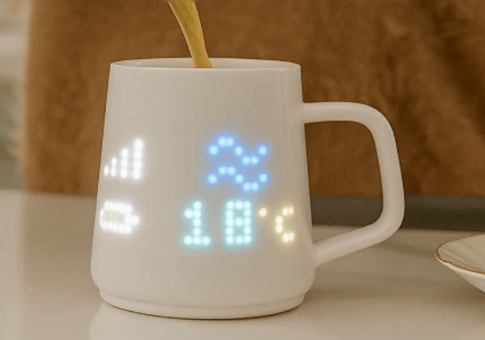 The mug’s pixel screen can also be set to work as a smart temperature display, for which it shows your beverage’s temperature in real-time as a way to help prevent burning-hot sips.