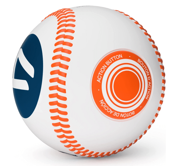 Pressing the ball’s Activity button will instantly turn On the ball’s power and also its smart activity tracker microprocessor for its accurate baseball-metric tracking capabilities.