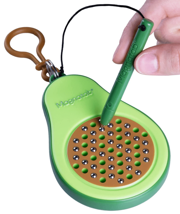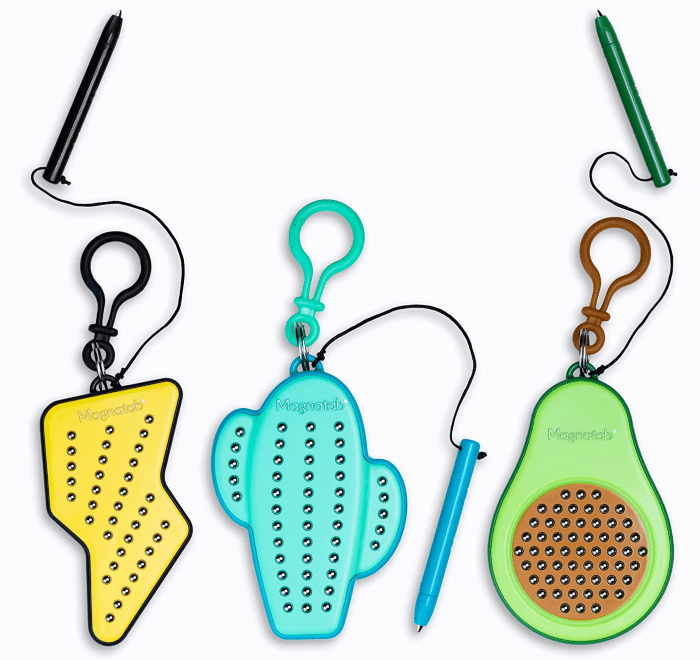 The PlayMonster Magnatab Minis are magnetizing sensory fidget toys for kids ages 3 and up which feature an empty board equipped with many tiny magnetic beads, plus a magnetic stylus that’s used to pull up the beads to the surface of the board with an enjoyable clicking sound and draw unique shapes and patterns.