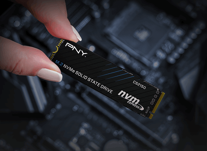 The PNY CS2150 is a high-performance SSD for desktops and laptops featuring an NVMe Gen5 x4 interface that delivers performance of up to 10,300MB/s seq. read and 8,600MB/s seq. write speeds, which is powered by a 218-layer 3D TLC NAND flash memory, and up to 2TB storage.