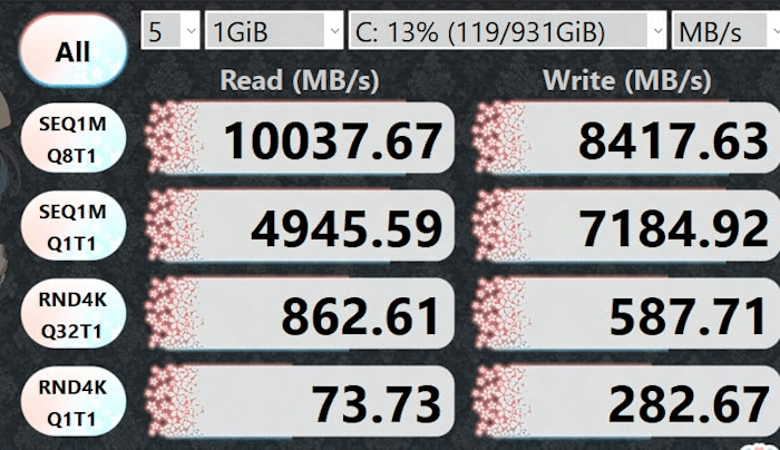 Its PCI-Express 5.0 interface can deliver sequential read speeds of up to 10,300MB/s and sequential write speeds of up to 8,600MB/s. This makes the drive capable of booting up in seconds, achieve rapid application launches, and an outstanding system performance overall.