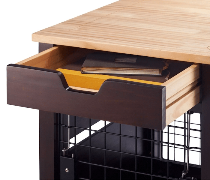 Lastly, the top of side of the crate also comes equipped with a top drawer, which provides dog owners with a handy storage space for storing dog treats, small toys, and even other items such as books or remote controls. Its drawer can hold up to 10 lbs. of weight.