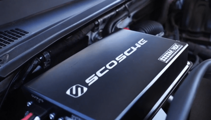 For its power source, the Scosche M8RIX’s dedicated power distribution module is connected directly to your vehicle’s battery, from which it draws its electrical current from.