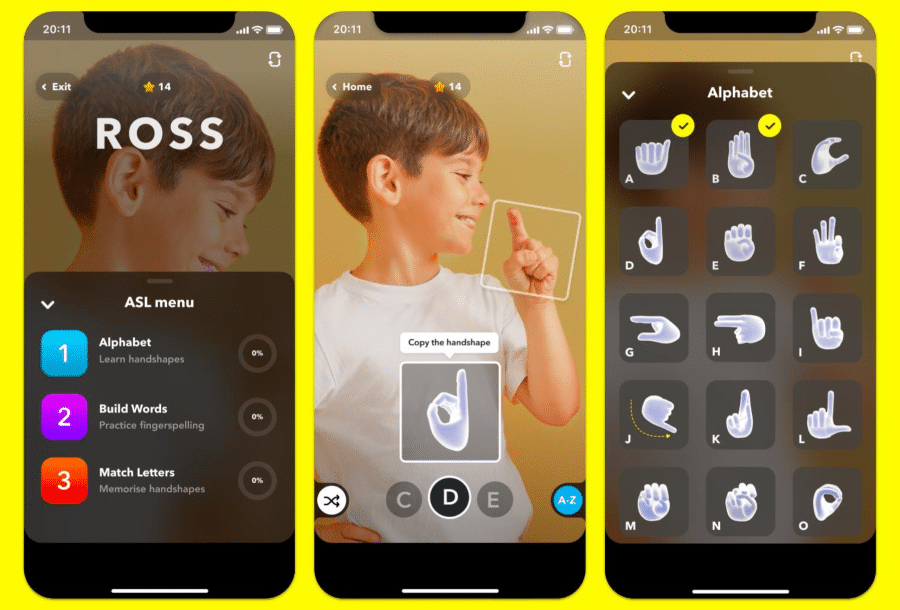 Essentially, Snapchat’s new ASL Alphabet Learning Lens is a more advanced and educational version of the three augmented reality Lenses that Snapchat had already released back in September 2021, during the International Week of the Deaf, for which those AR-powered lenses can be used within the App for automatically recognizing and translating American Sign Language.