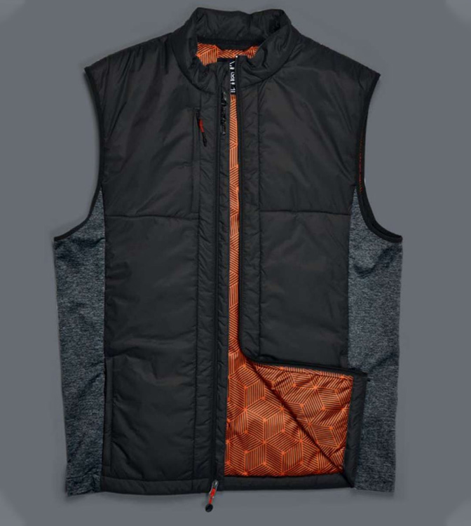 The Sun Colter Vest is a packable, ultra-lightweight and insulated golf vest that features insulated stretch panels, two hand warmer pockets, internal pockets that double as a stuff sack and external chest pockets, and a zip-through collar with chin-guard.
