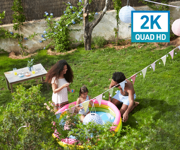 Its high-end camera lens and 4MP image sensor make this smart outdoor security camera capable of recording an exceptionally sharp and detailed video at a 2K Quad HD resolution (2560 × 1440 pixels), for which its video footage is recorded in a 100º Wide FOV and displayed in a 16:9 aspect ratio.