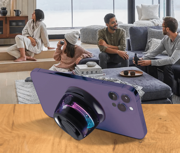 The SAY MagBOOM LED is a super-compact and ultra-portable Bluetooth speaker that has a Magnetic Suction design that allows it to be securely sticked to just about any flat surface including any MagSafe ready iPhone, while also coming together with an included extra metallic ring that allows it to be sticked in the same fashion to Non-MagSafe devices, featuring a 3 Watt Output that makes it capable of delivering a fairly decent sound-quality, plus built-in controls, LED visual effects, Bluetooth 5.0 Connectivity, USB-C Charging, and up to 4 hours of battery life.