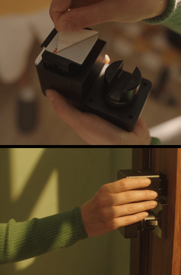 For setting it up, you simply have to carefully attach the 3M adhesive tape that’s included in its package onto the spot where you’re looking to install it within your door’s current lock, and then just install the SwitchBot Lock over the already placed 3M adhesive tape.