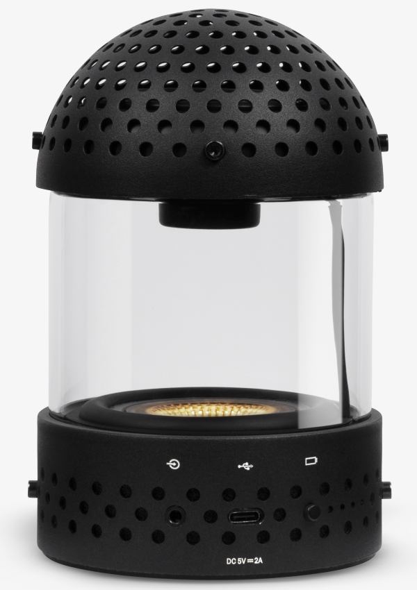 The Transparent Light Speaker is a portable glass lantern Bluetooth speaker that combines a glowing and vibrating LED Light with a 2.5″ Full Range Sound Driver and a 3″ Subwoofer for an outstanding 360º Omnidirectional Sound, featuring up to 10 hours of battery life, along with support to True Wireless Dual Pairing via Bluetooth 5.0.