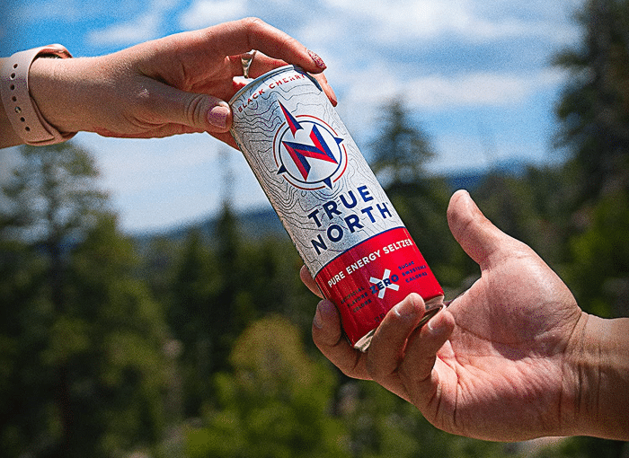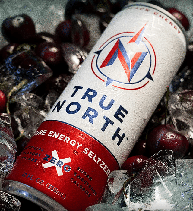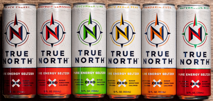 Starting with the formula used to make the True North Energy Seltzer Drinks. Inspired by outdoor adventures and experiences, these cans of caffeinated sparkling water energy drinks are made solely from plants.