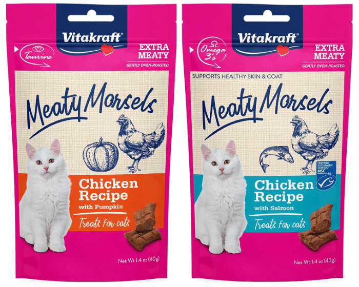 The Vitakraft Meaty Morsels are sold at just $2.48 for a 1-Pack, $9.99 for a 4-Pack, and $19.99 for a 9-Pack. You can currently order them online from Vitakraft’s corresponding shopping page, from Amazon, from Chewy, and you can also get them from Walmart.