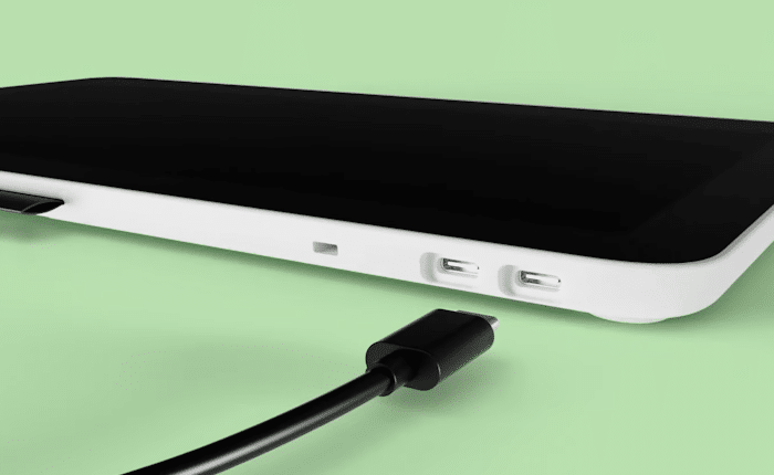 Then, at the top-left side of the tablet, we have two (x2) USB-C ports that can be used for connecting it to other devices, whether that’s a PC, a laptop, a Chromebook, or even a smartphone, along with the tablet’s dedicated reset port (located next to its USB-C ports).