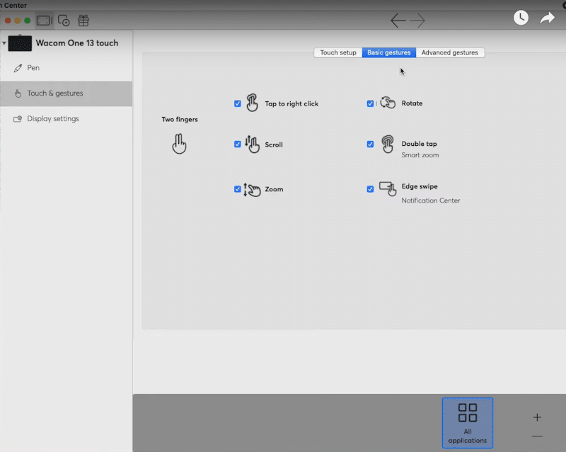 Users can perform several different touch controls, including tapping for performing right clicks, scrolling (up and down), zooming in and out, double tapping for a smart zoom function, as well as rotating images, dragging (i.e. moving through) images, and also edge swipping (to bring up the Notification Center).