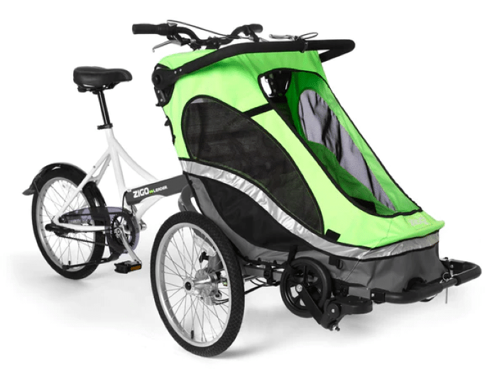 Whenever parents are looking to use the two separate elements from this convertible bicycle system together to ultimately convert them into a three-wheeled child carrier bike, note that the Zigo Cycle and the Zigo ChildPod can be seamlessly linked together via their proprietary LeaderLink System, an innovative 2-unit linking system that ultimately allows them to be used as a stable and reliable three-wheeled child carrier bike.